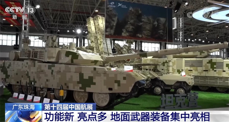 兵器工業(yè)集團(tuán)專(zhuān)家 程子恒:在最中心位展示的是我們VT4系列的重型主戰(zhàn)坦克,在旁邊我們還看到有一款輪式的無(wú)人車(chē)。我們的坦克是一個(gè)履帶式的,在一些特殊泥濘的環(huán)境,我們是靠履帶行進(jìn)的,但是我們會(huì)發(fā)現(xiàn)有一些需要高速行進(jìn)的場(chǎng)景,輪式有很強(qiáng)的機(jī)動(dòng)性,那么用輪式的無(wú)人車(chē)高速到前端進(jìn)行偵查的任務(wù),做一個(gè)輪履的相互配合,相互互補(bǔ)。